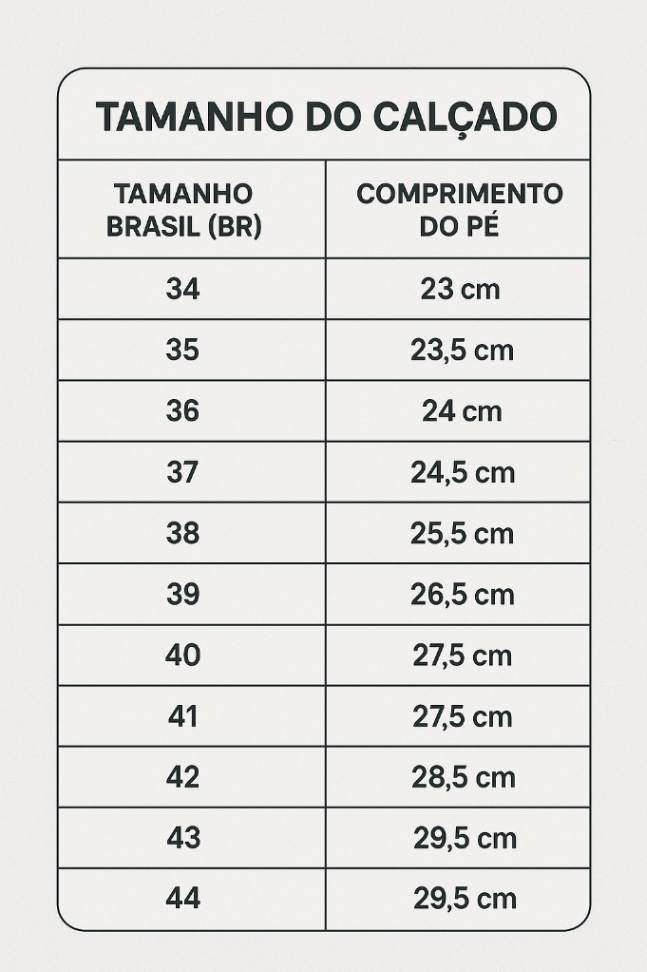 4.Escolha o tamanho apenas de acordo com o comprimento do pé;